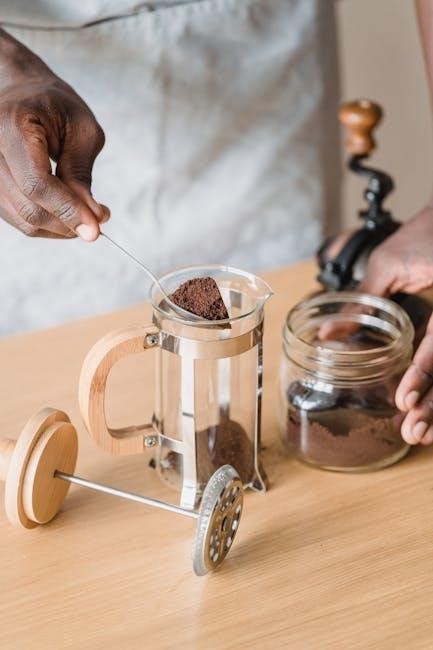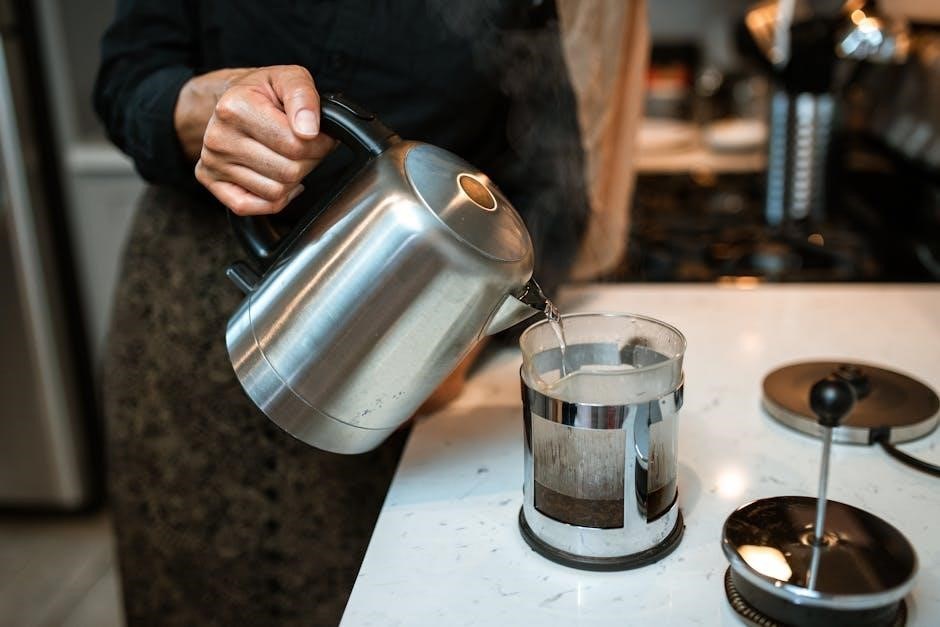 Regular cleaning is vital to prevent mineral buildup, which can affect brewing performance and coffee flavor. PDF user guides detail descaling procedures. Avoid overfilling the reservoir, and always ensure it’s securely in place before starting the brewing cycle. Proper water levels are key to optimal extraction.